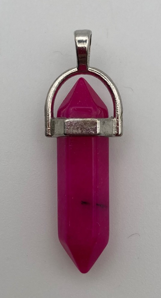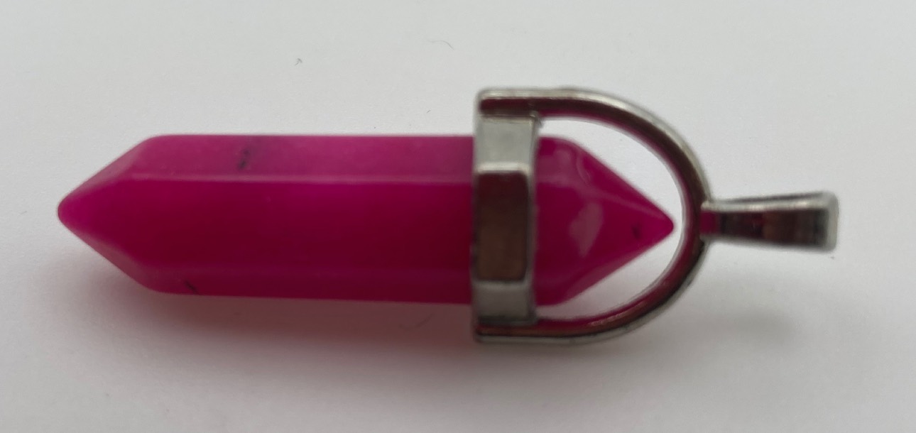 Ciondolo a bacchetta, per collana o porta chiave, in Agata Lace fucsia, cm. 1 x 4,2.