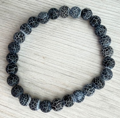 Braccialetto elastico in pietra con sfere da mm. 8 in Agata Pelle di Serpente, misura cm. 19,8