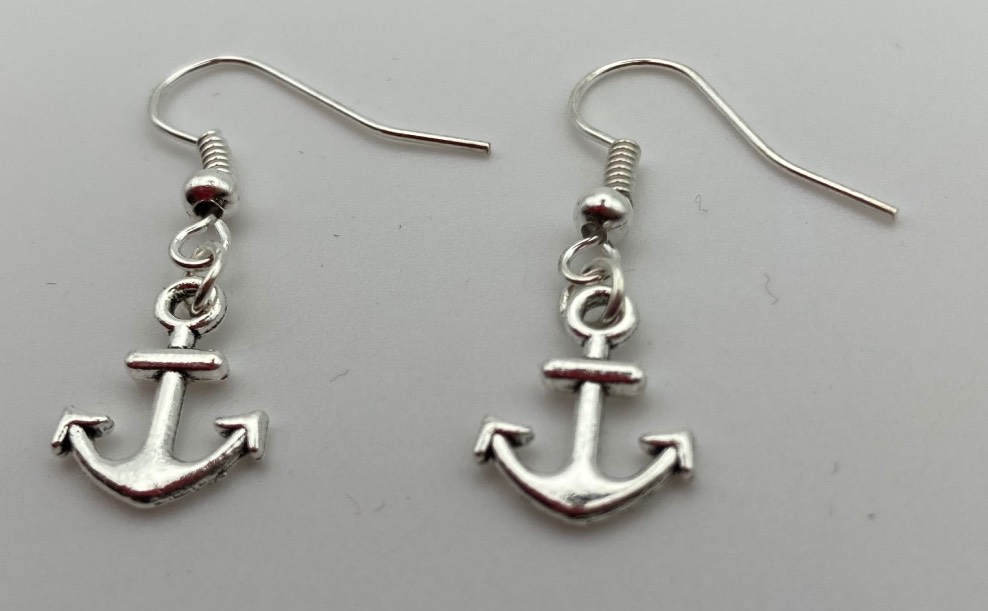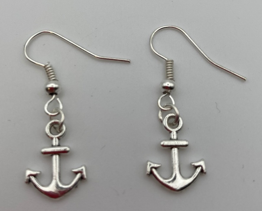 Coppia orecchini color argento, con ciondolo con ancore, mm. 10 x 10, chiusura con monachella.