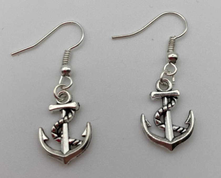 Orecchini con ancore, chiusura con farfallina.