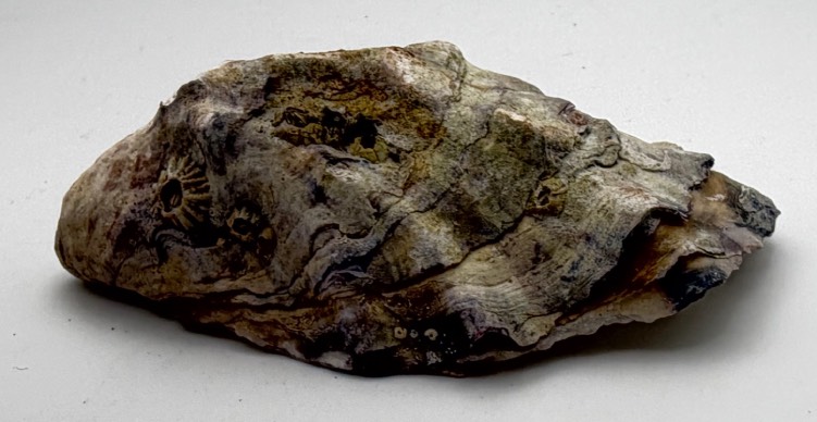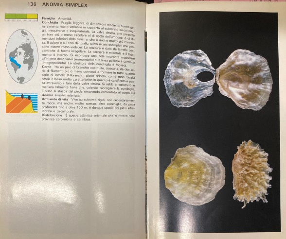 Conchiglia da collezione, modello Anomia Simplex, colore grigio, bianco, misure cm. 10 x 5,6 x 3,3, buone condizioni.