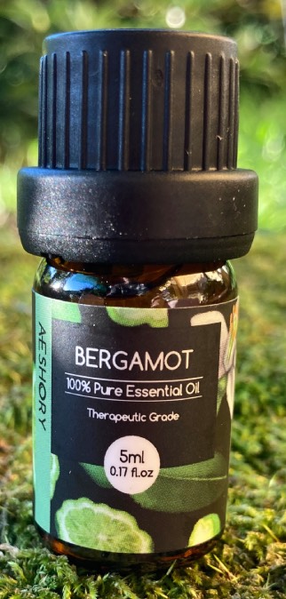 Olio essenziale 100 % puro, da usare diluito con olio di Jojoba o di Argan, modello Aeshory, confezione da 5 ml., profumo di Bergamotto.