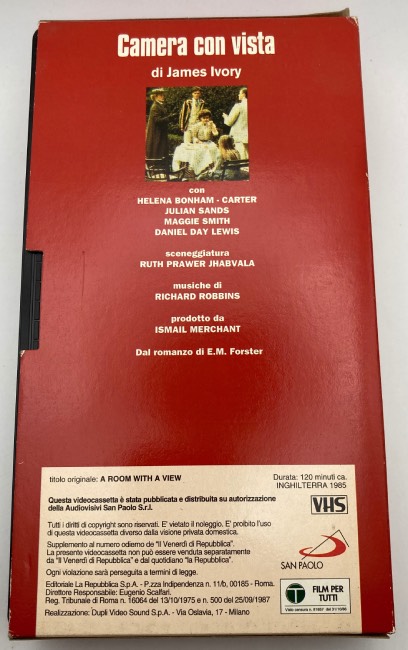 Film in VHS del 1985, durata 120', Camera con Vista, edizione editoriale La Repubblica, buone condizioni.