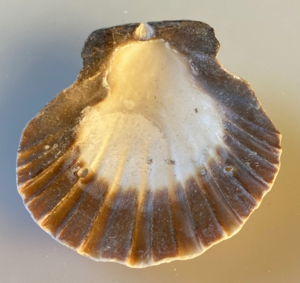 Conchiglia da collezione, modello Cerastoderma Glaucum. colore bianco, marrone e beige, misure cm. 5,4 x 5,5 x 1,2, buone condizioni.