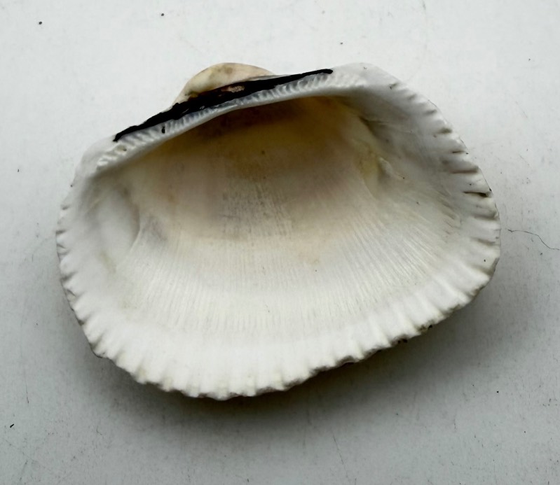 Conchiglia da collezione, modello Cerastoderma Glaucum, colore bianco, beige, misure cm. 4,6 x 3,6 x 1,4, buone condizioni.