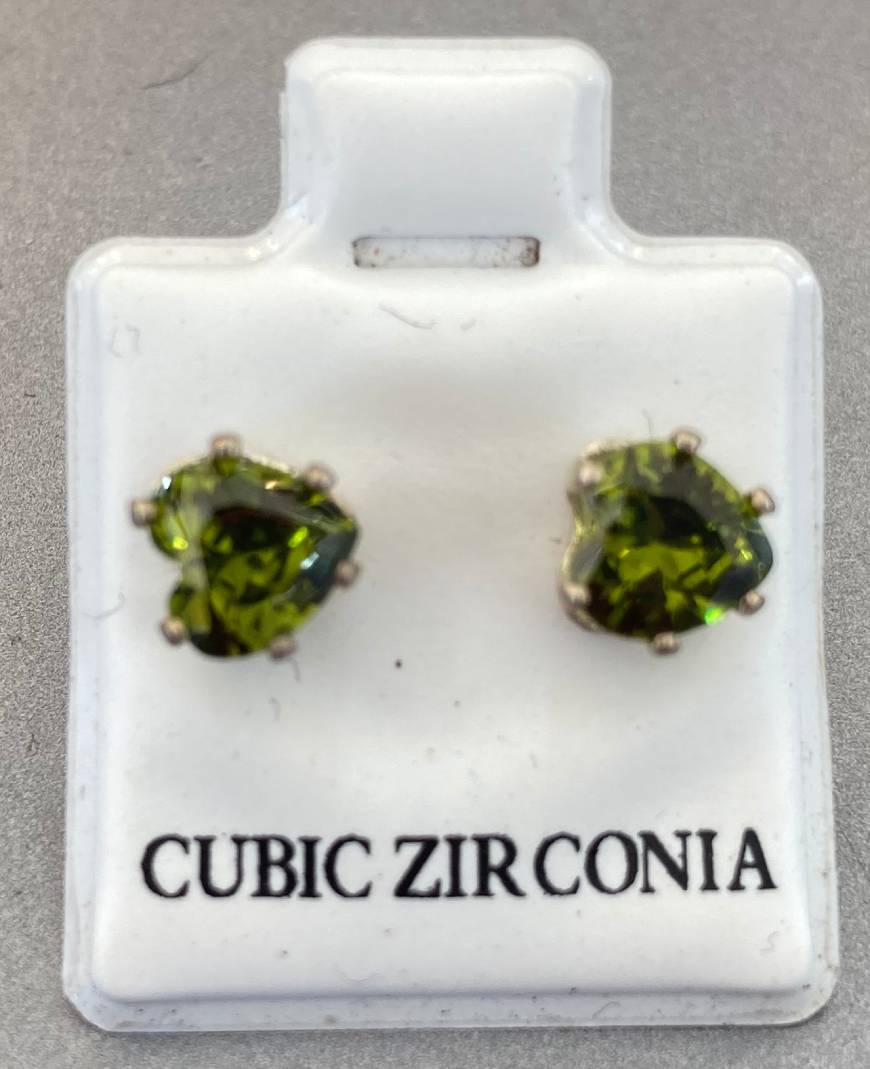Coppia orecchini con cristalli verdi a cuore mm. 6, chiusura con farfallina.