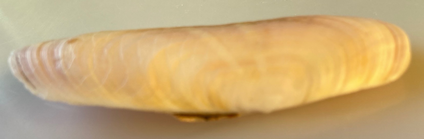 Conchiglia da collezione, modello Donax Variabili, colore beige, bianco, misure cm. 7,4 x 3,3 x 1,2, buone condizioni.