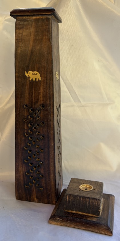 Brucia incenso torre in legno con base estraibile per coni e bastoncini.