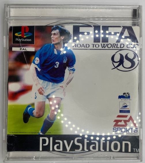 Video games Fifa 98 Road to World Cup, per Play Station 1 e PSX, completo di copertina illustrativa cartacea, ottime condizioni.