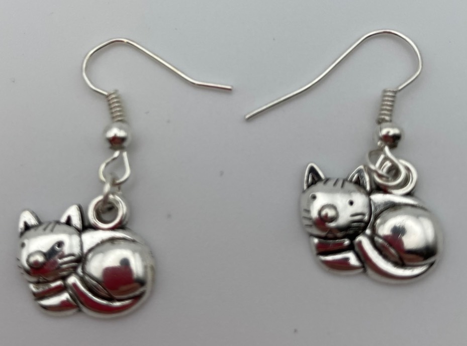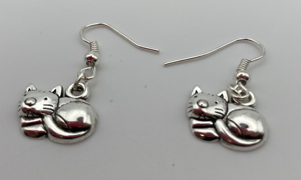 Orecchini ciondoli con gatti, chiusura con farfallina.