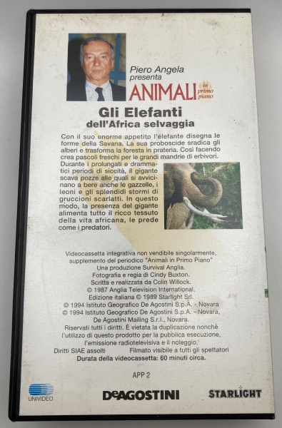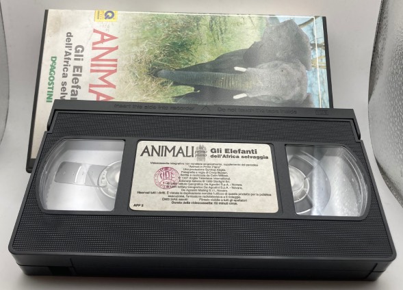 Film documentario Animali in Primo Piano, Gli Elefanti dell' Africa Selvaggia, editoriale De Agostini, presenta Piero Angela, durata 60', del 1994, ottime condizioni.