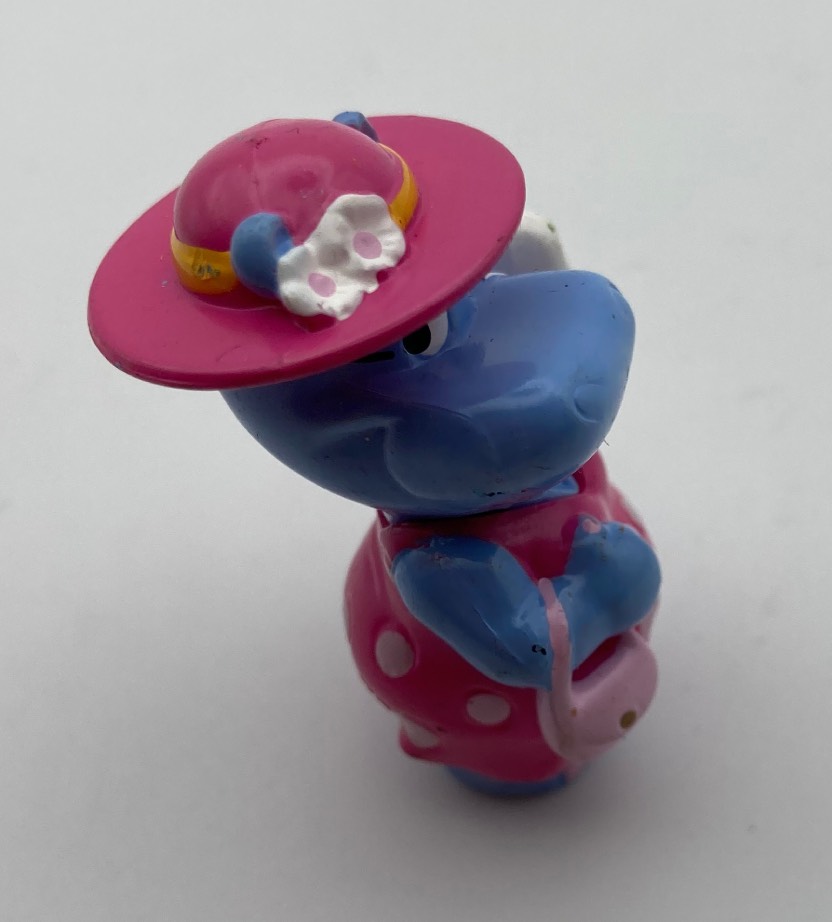 Sorpresa Kinder Ferrero, anno 1999, uscita Germania, serie Happy Hippo Hochzeit, modello invitata con borsetta e cappello, buone condizioni.