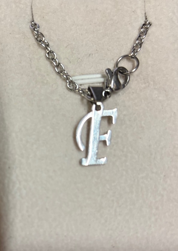 Braccialetto da donna, in acciaio inox, chiusura con moschettone, ciondolo con lettera iniziale F.