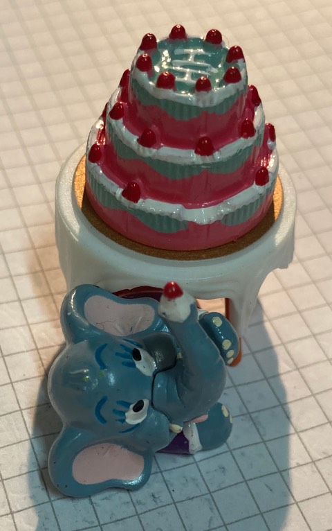 Sorpresa Kinder Happy Hippos Hochzeit Germania 1999, modello Moritz Stibitz, elefantino sotto la torta, ottime condizioni.