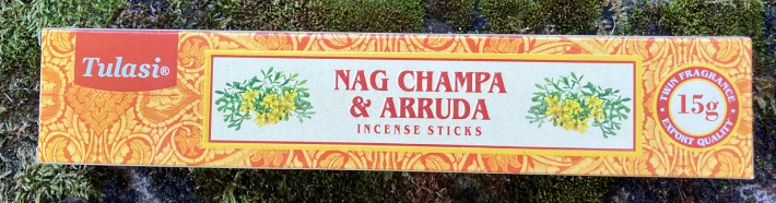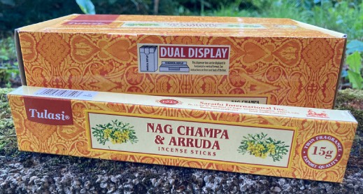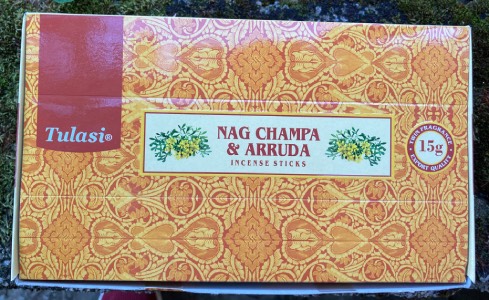 Scatola d'incenso in bastoncini, modello Sarathi Tulasi Nag Champa con Ruda, confezione da 15 gr., provenienza India.