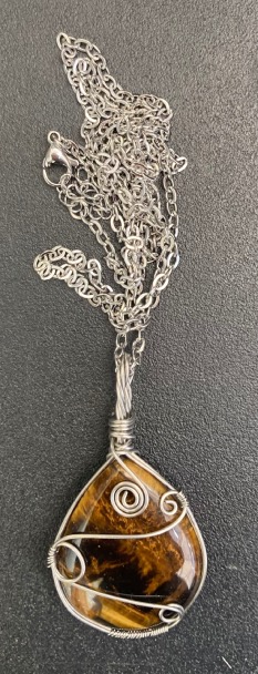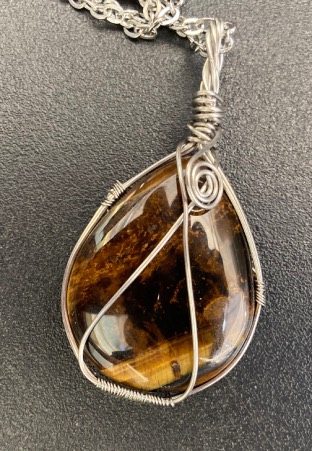 Collana con ciondolo in gabbietta in Occhio di Tigre.