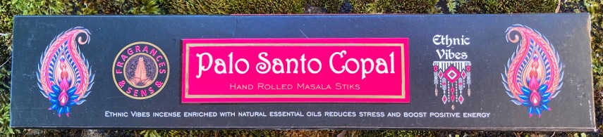 Scatola d'incenso in bastoncini, modello Ethnic Vibes Palo Santo con Copal, confezione da gr. 15, provenienza India.