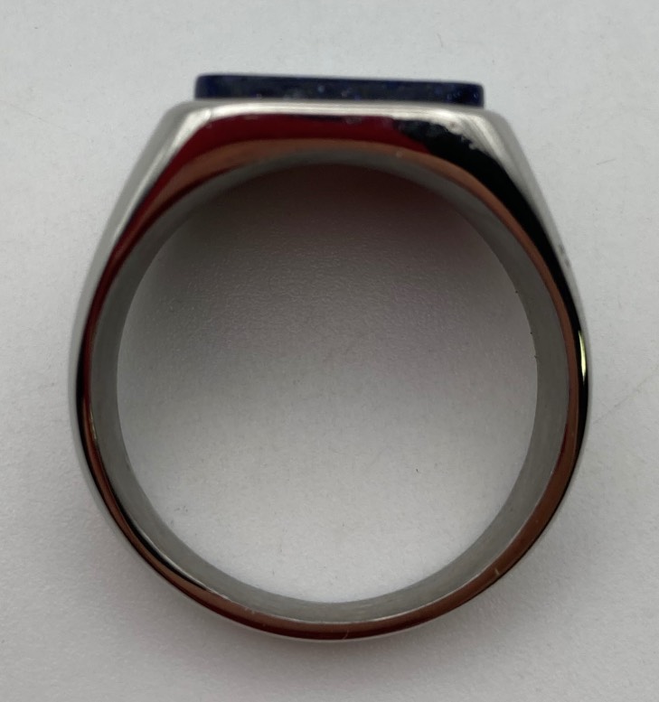 Anello in acciaio inox, fascetta unisex, con pietra Sandstone Blu, di forma piatta.