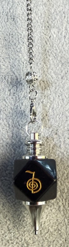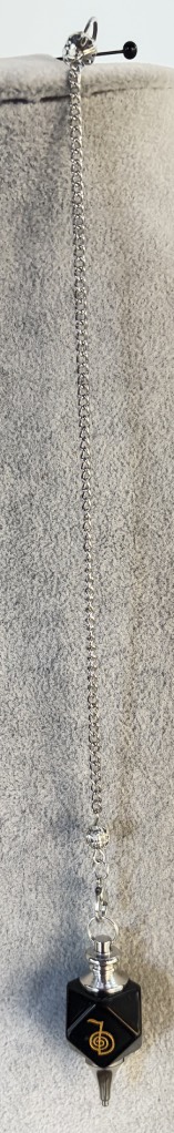 Pendolo in Tormalina nera, punta e catenella in metallo.