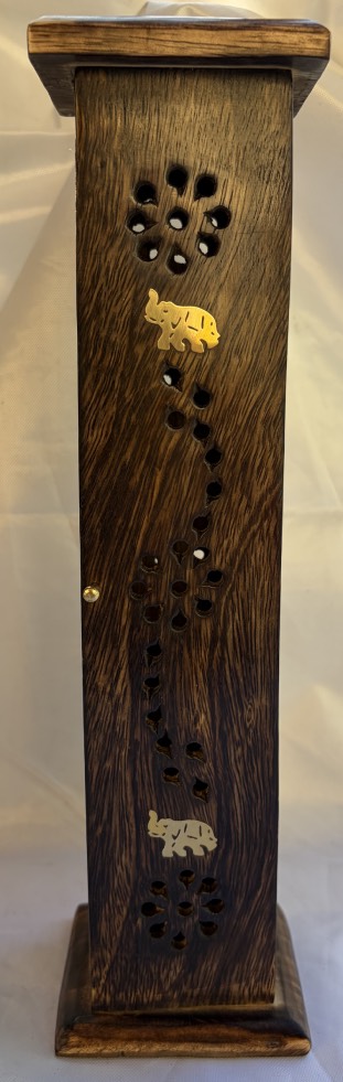 Porta incenso torre in legno con sportello per coni e bastoncini.